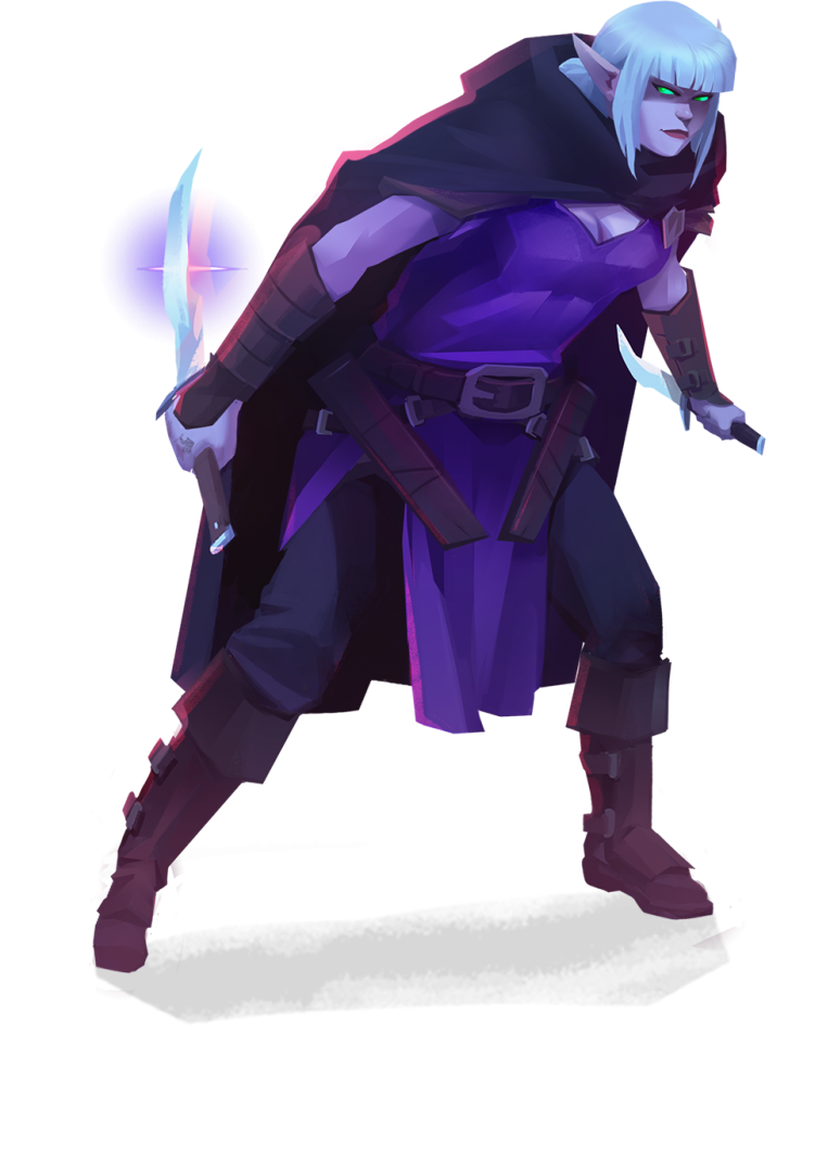 La Voleure – rusé, agile et insaisissable. Elle ne veut pas d’un combat honorable et utilisera tout ce qui lui tombe sous la main, que ce soit martial ou magique, pour anéantir ses ennemis et exploiter leurs faiblesses..